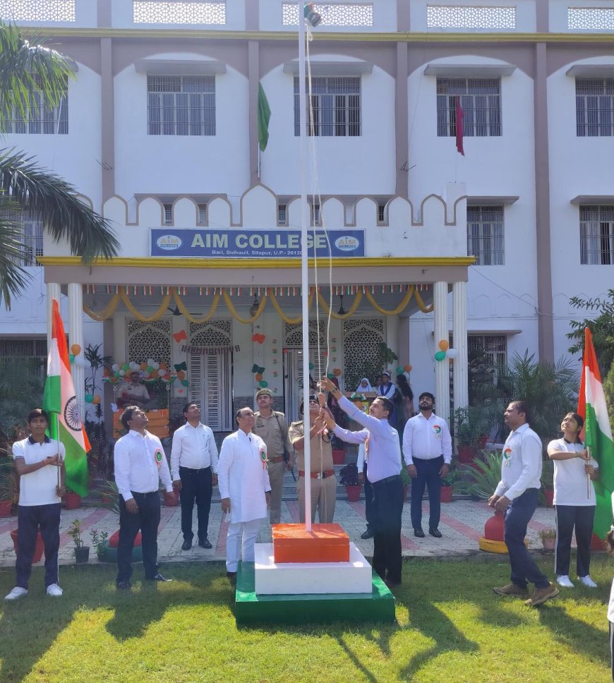 सिधौली (सीतापुर) — देशभक्ति के उल्लास और गरिमा से ओत-प्रोत माहौल में AIM CBSE कॉलेज, बाड़ी सिधौली में स्वतंत्रता दिवस धूमधाम से मनाया गया। सुबह कार्यक्रम का शुभारंभ मुख्य अतिथि सीओ सिधौली श्री कपूर कुमार ने ध्वजारोहण एवं राष्ट्रगान के साथ किया।